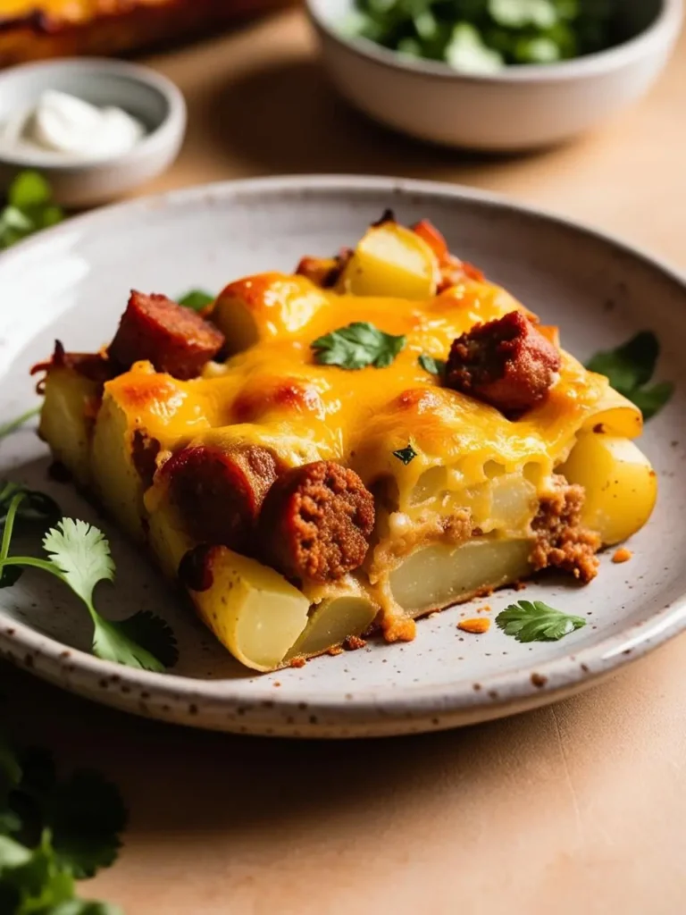 Chorizo and Potato Taco Bake is a flavorful dish that combines spicy chorizo sausage with tender potatoes. This recipe is enjoyable to make and less complicated than it may seem.